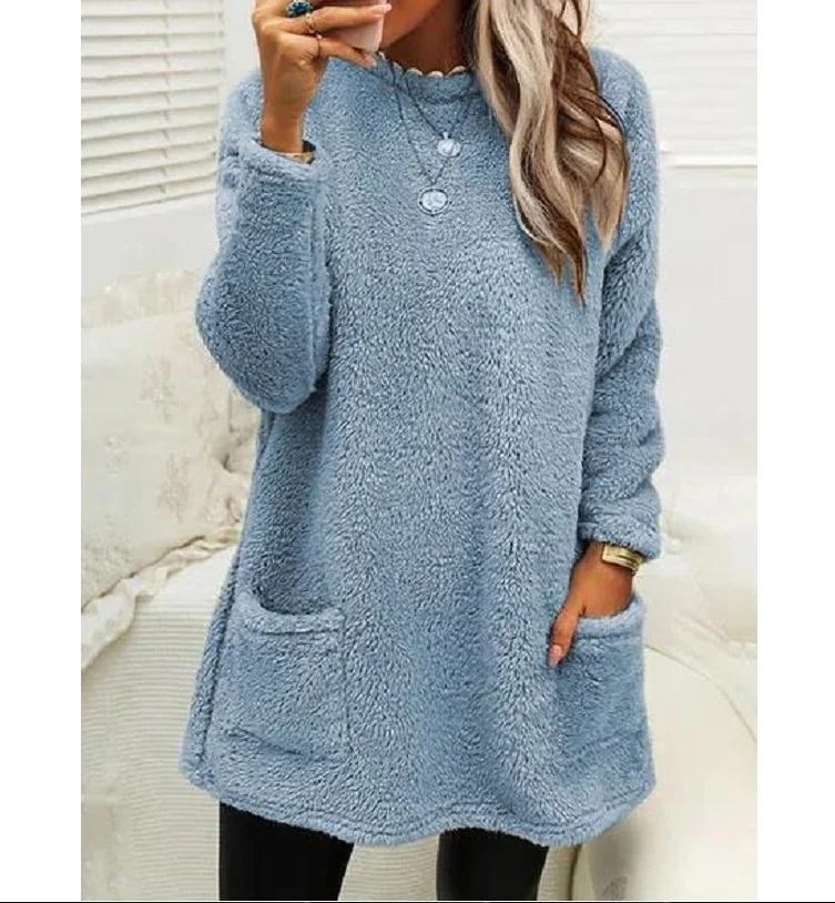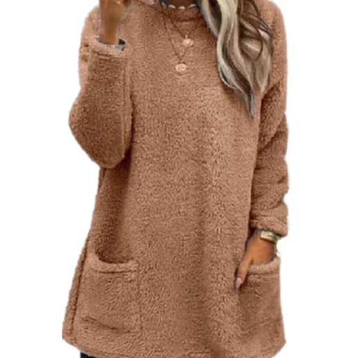 Women's Fleece Pullover Long Sweater With Pockets Winter Warm Thinken Sweatershirt Casual Long Sleeve Plush Tops Hoodie Coat Streetwear Fall Loose Outfits Hoodie Tops